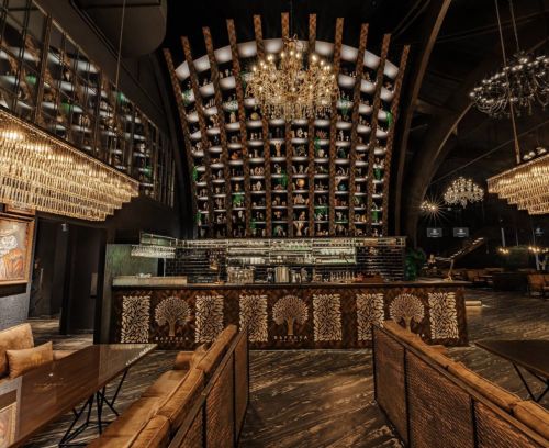 Барная зона Барвихи Lounge Митино, украшенная 200 уникальными композициями из элементов декора, приковывает взгляды. Самостоятельные сюжеты складываются в одну историю о роскоши и величии. Грамотно подобранное освещение, солнечные лучи и свет фонарей города, попадающие в помещение сквозь панорамные окна, играют на разнообразии форм и фактур, заставляя рассматривать этот ансамбль бесконечно.