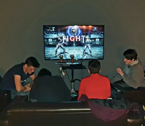 2 этажа: первый этаж это лаундж зона, второй этаж это лаундж совмещённый с ps-4 и третья зона это компьютерная с мощными компами. Во всех зонах можно курить кальяны, имеется кухня и напитки, чаи, кофе и пиво.