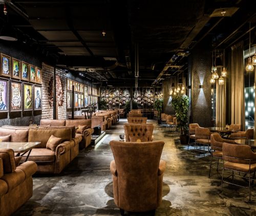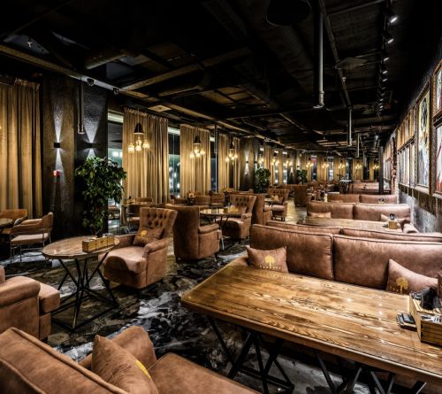 Главный зал имеет отличительные элементы именно наших кальянных клубов, такие как мраморная фотозона, авторская мебель и прекрасные картины, полюбившиеся гостям. Для проведения мероприятий сконструирована сцена. Живой звук – изюминка кальянной рядом с метро Выставочная.