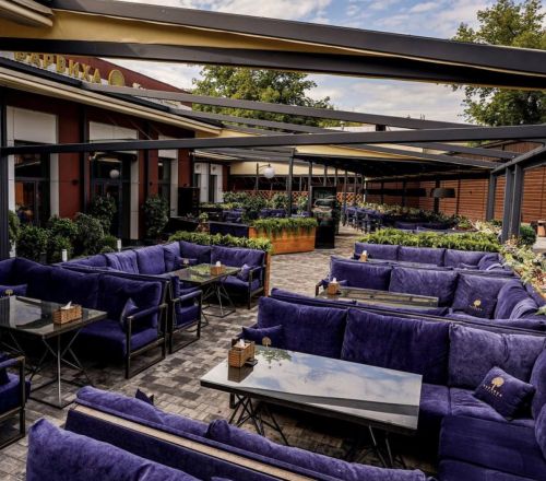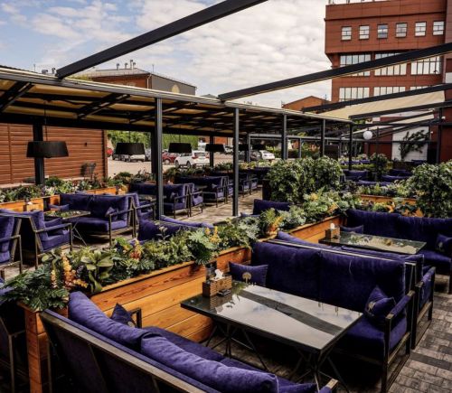 Веранда открылась уже в конце весны 2021 года. Летняя часть нашего кафе включает в себя более 30 уютных зон. Организовав свой отдых на её территории, вы получите сервис высокого класса, качественную продукцию и возможность не упустить такие драгоценные летние вечера. Свежий воздух, комфортабельная мебель, шикарный вид и современная конструкция, включающая мобильные стены и крышу – всё это выражение нашей заботы.