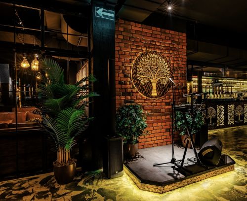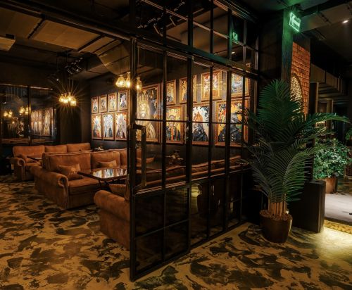 Уютный зал заведения в Раменках оформлен с использование фирменных элементов: живая декорированная стена грамотно зонирует пространство для самых комфортных вечеров, изысканная мебель помогает расслабиться после рабочего дня, а сцена является центром выступлений резидентов сети Барвиха Lounge.